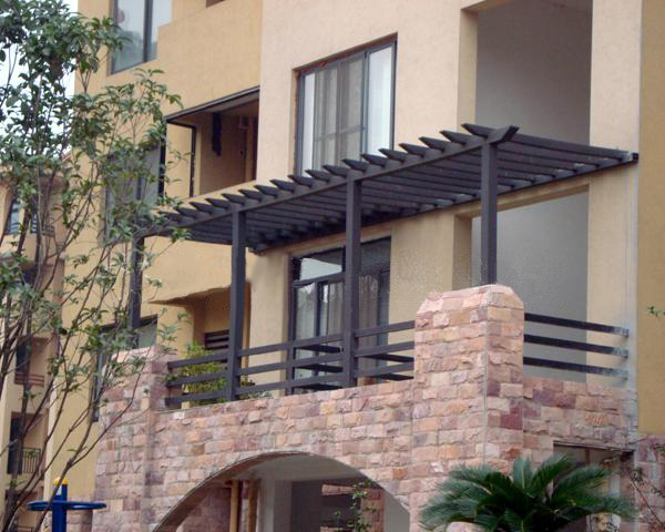 Plastic wooden arbor and wooden house